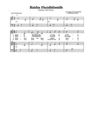 This song is about a little boat that went to sea, and neither the boat nor its owner returned. "The tiny boat, the lively boat, the pretty boat, the boat of Phelim, / The honest boat, the willing boat, the boat of Phelim, with Phelim along." The sheet music includes the original Gaelic words and an accurate, singable English translation, as well as the melody, chord symbols, and arrangement for the lever or pedal harp. It is 4 pages, 8½" x 11" with an intricate harp illustration by Celtic artist Elly Fithian. Easy to intermediate.