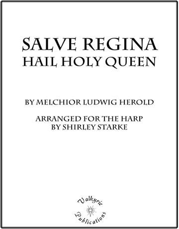 Two songs in honor of the Blessed Mother, written for harp and voice: Ave Maria (Lourdes Hymn) and Salve Regina - Hail Holy Queen, in a new musical setting with the words "O clement, O loving, O sweet Virgin Mary!" as a refrain after each verse. Each is a separate piece of sheet music.