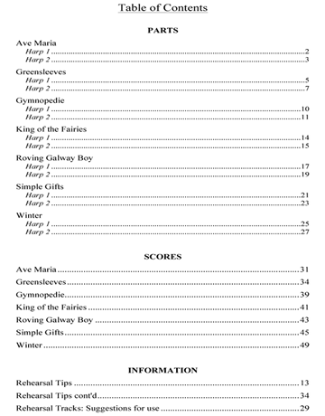 This is a book of duets arranged by the Zephyr Harp Duo for two lever harps or harp and C instrument. The collection of seven Classical and Celtic Pieces at the Intermediate Level are duets from the duo’s general repertoire.