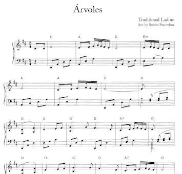 A collection of Jewish melodies from around the Mediterranean and Celtic music from the British Isles, woven together to celebrate the unique role harp has played in folklore and music from both traditions. Intermediate level, harmonics, well-marked accidentals, guitar chords, keys of C, Bb, G, F, and D. The accompaniment is very "harpistic" in nature with nice arpeggiated chords and flowing lines. 44 pages.